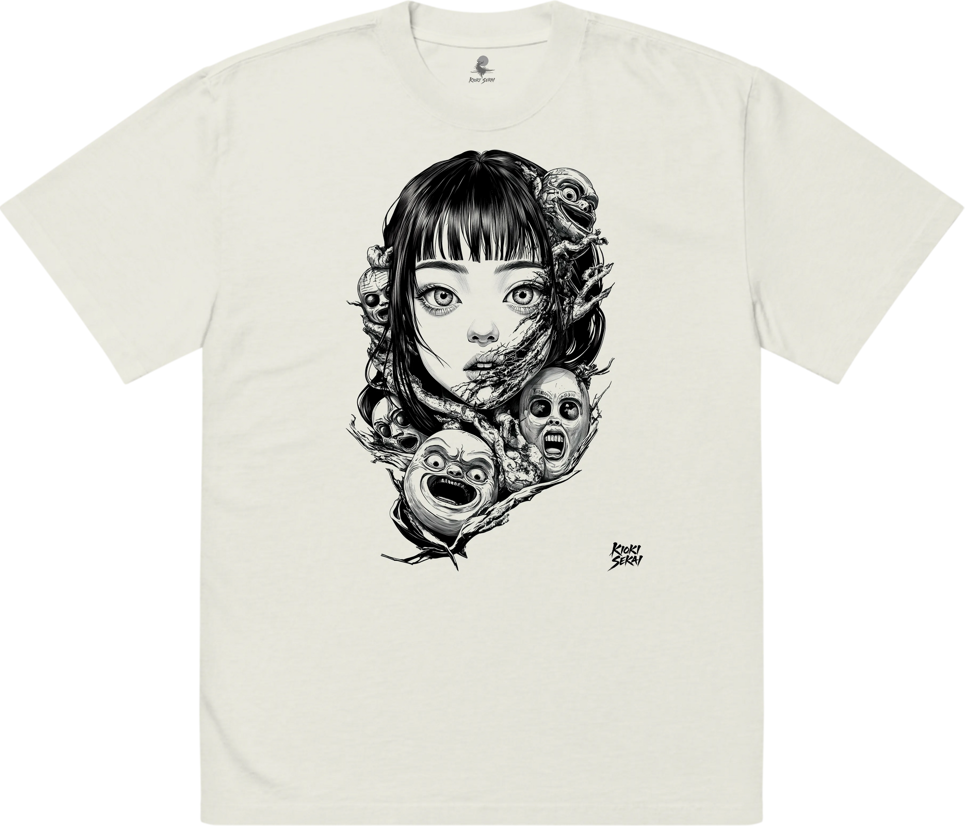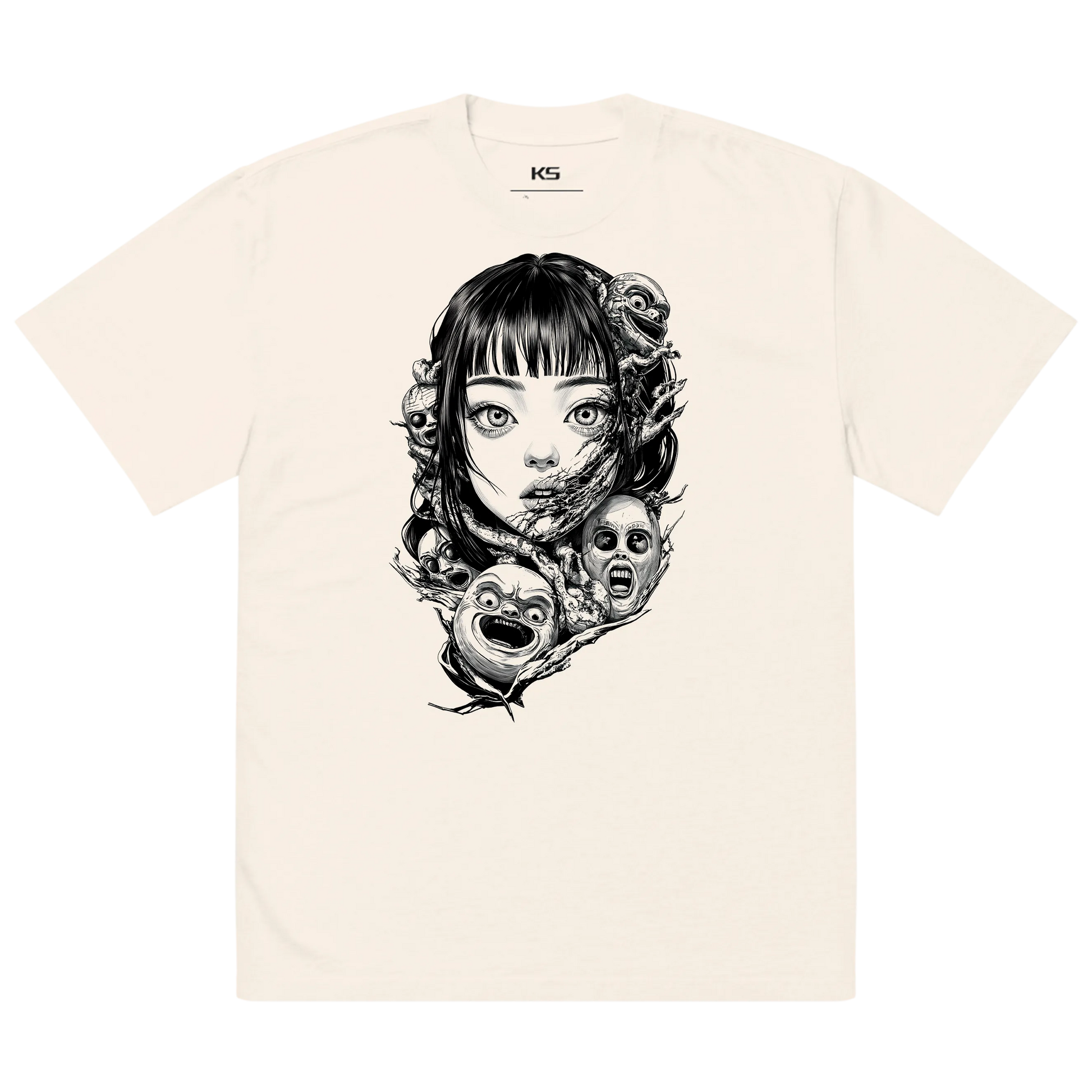 This premium oversized Japanese T-shirt features ethereal neo-traditional linework inspired by spiritual motifs, misty temples and calm atmospheres. Printed on a soft bone-white faded fabric, it enhances the collection’s minimal, timeless and spiritual identity.