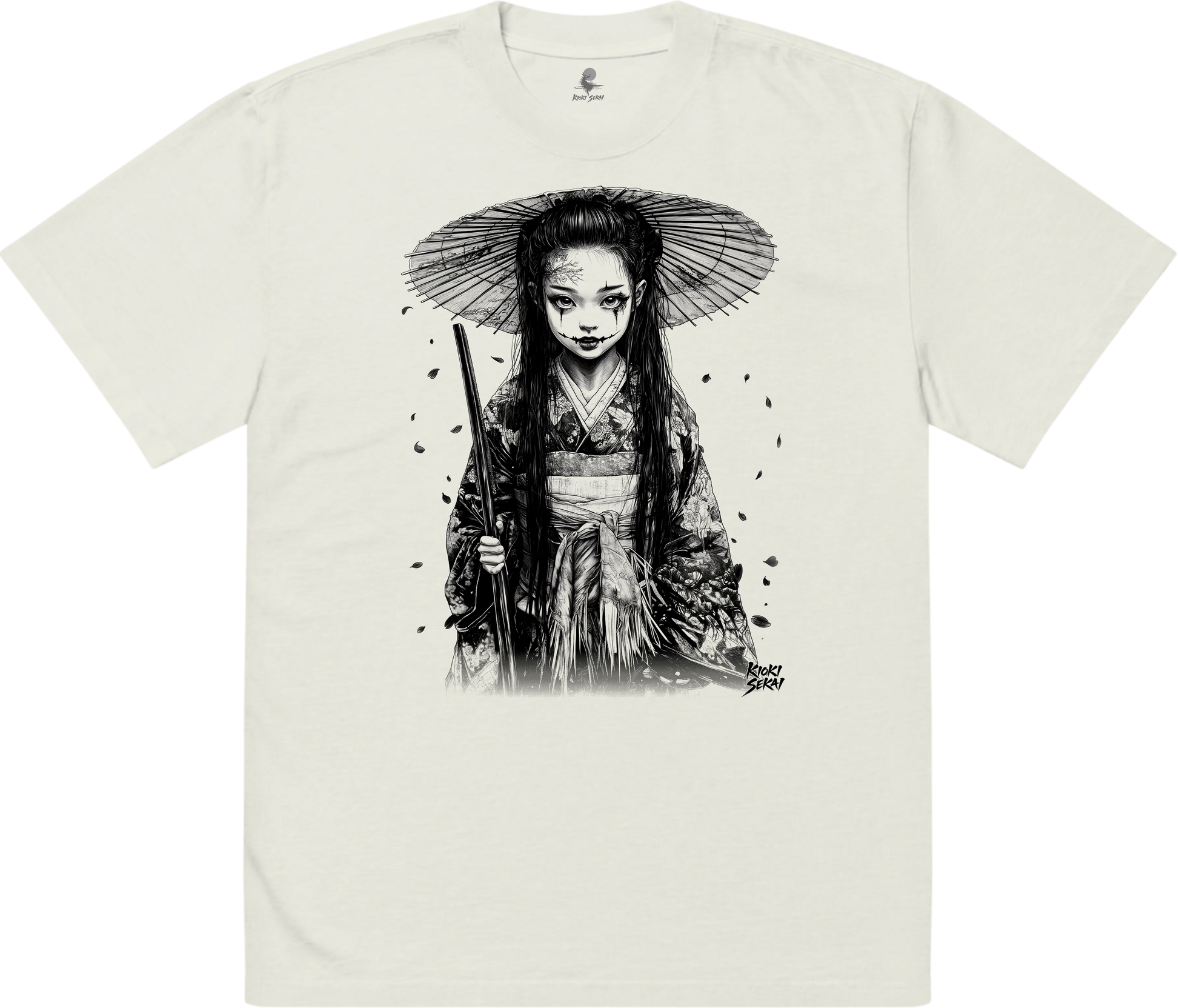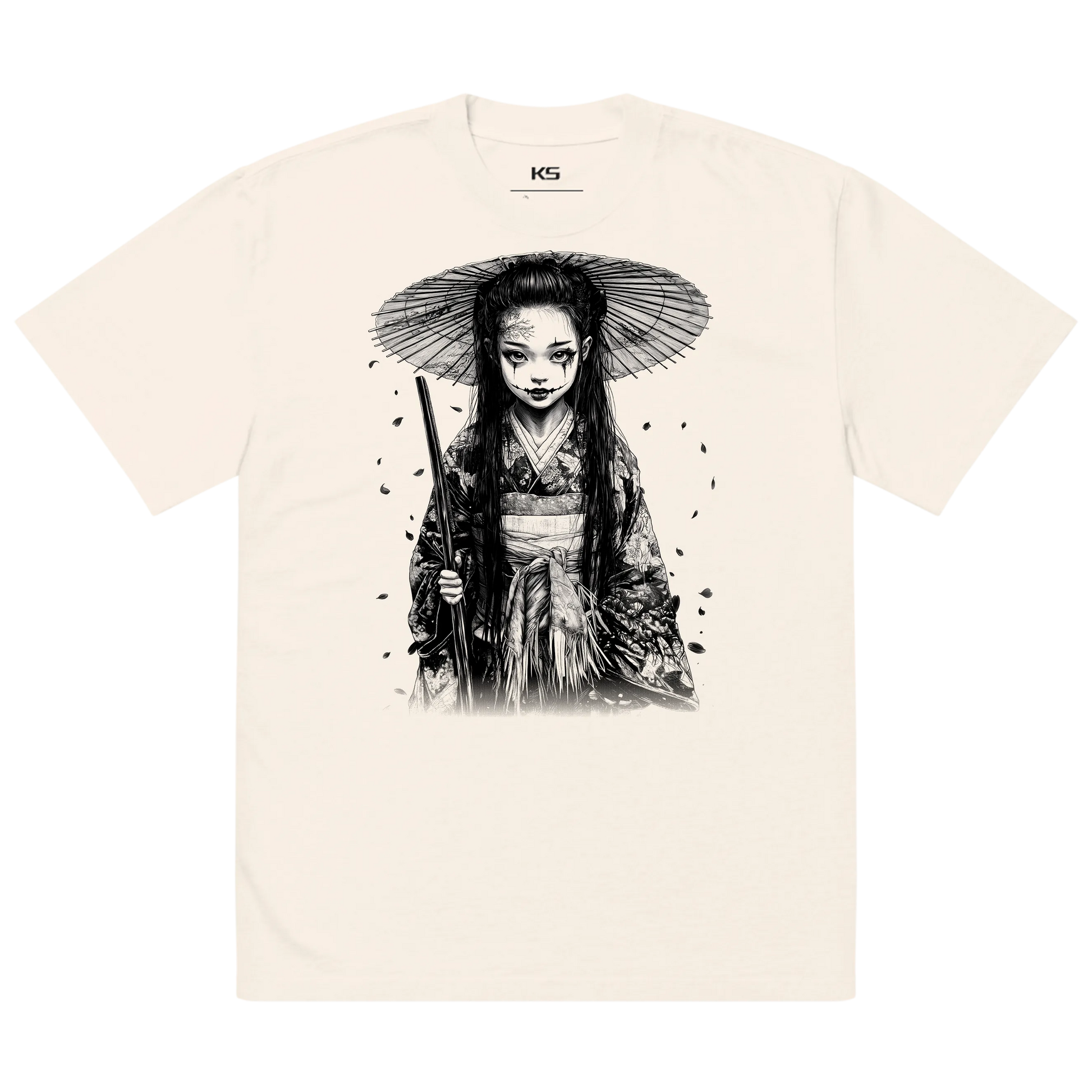 This premium oversized Japanese T-shirt features ethereal neo-traditional linework inspired by spiritual motifs, misty temples and calm atmospheres. Printed on a soft bone-white faded fabric, it enhances the collection’s minimal, timeless and spiritual identity.