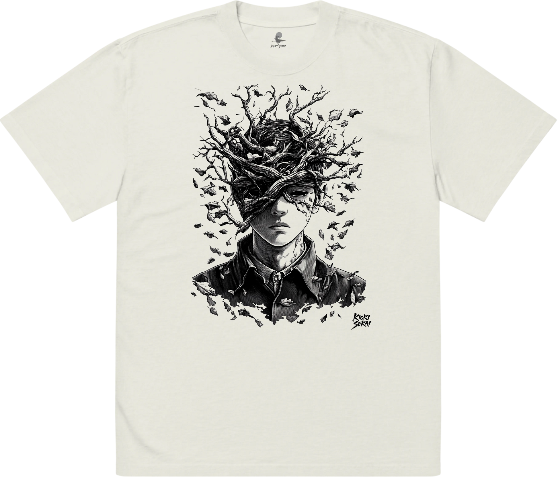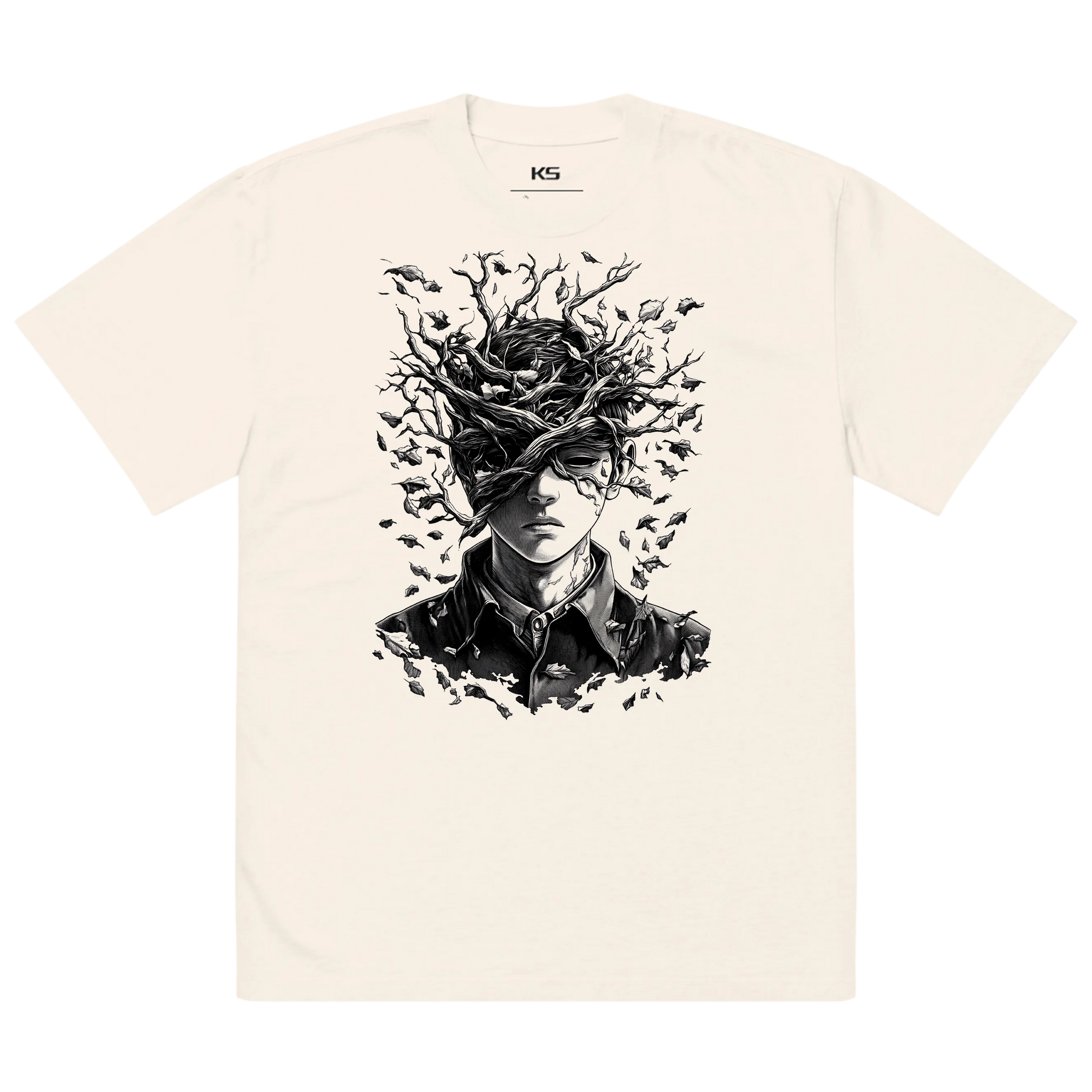 This premium oversized Japanese T-shirt features ethereal neo-traditional linework inspired by spiritual motifs, misty temples and calm atmospheres. Printed on a soft bone-white faded fabric, it enhances the collection’s minimal, timeless and spiritual identity.