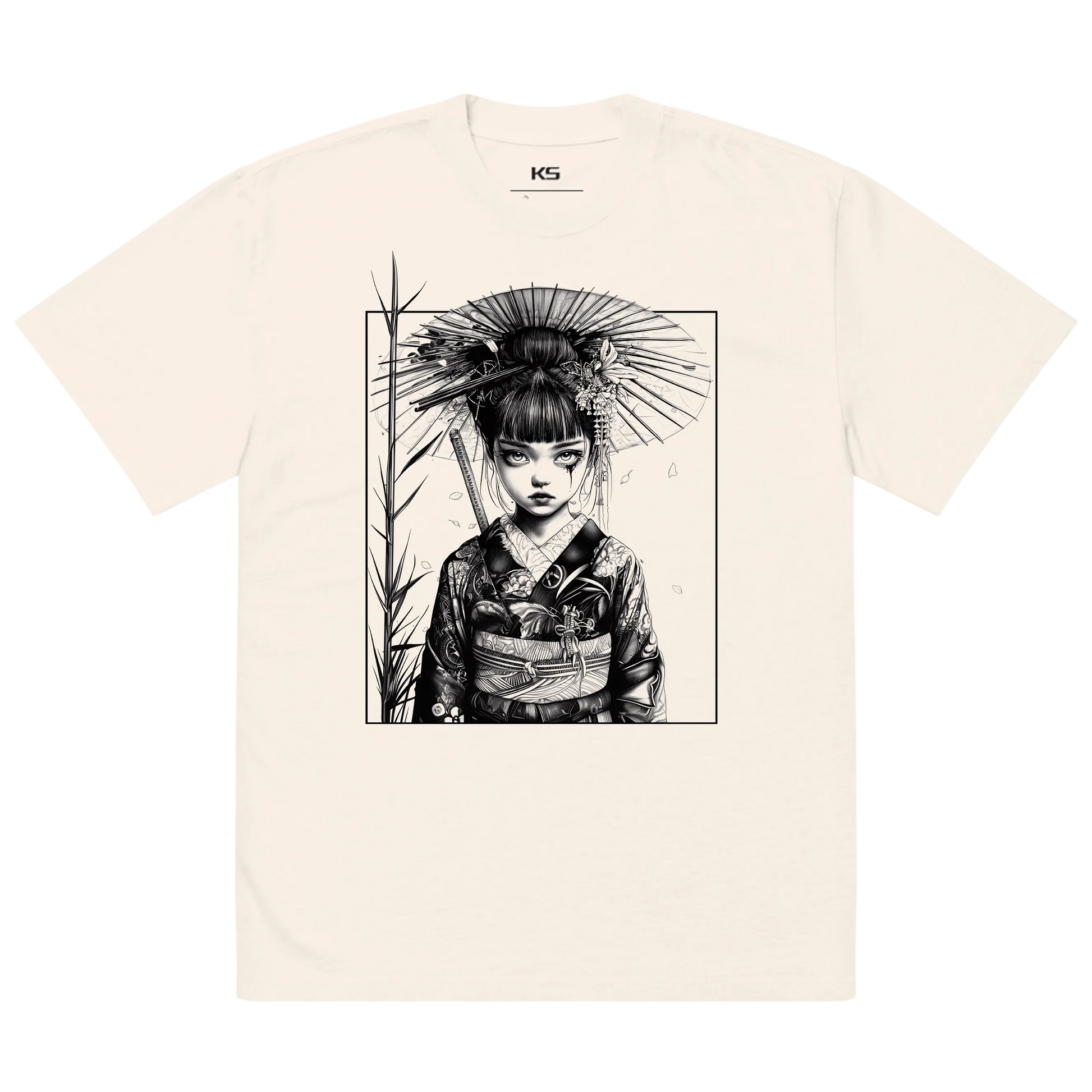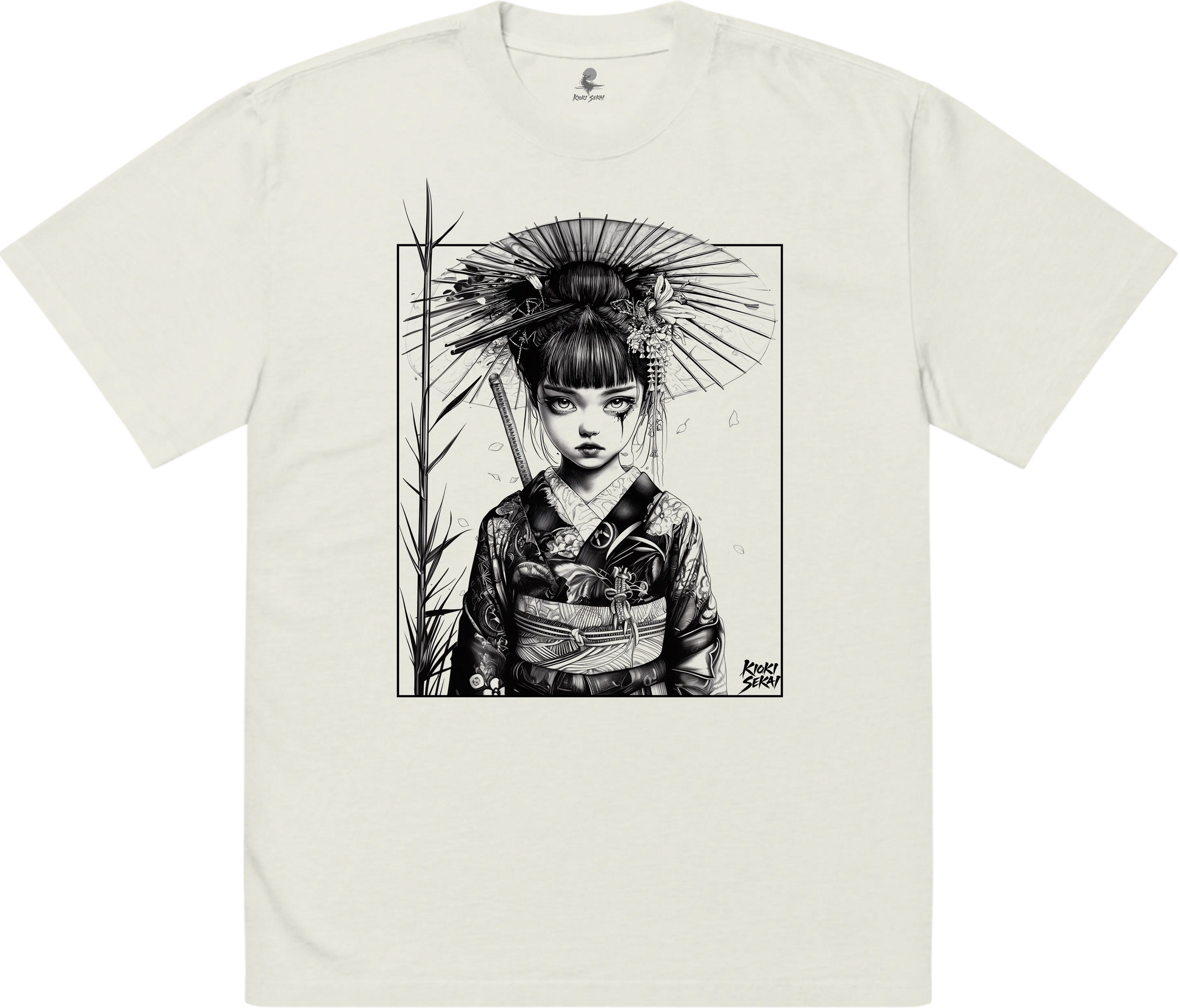 This premium oversized Japanese T-shirt features ethereal neo-traditional linework inspired by spiritual motifs, misty temples and calm atmospheres. Printed on a soft bone-white faded fabric, it enhances the collection’s minimal, timeless and spiritual identity.