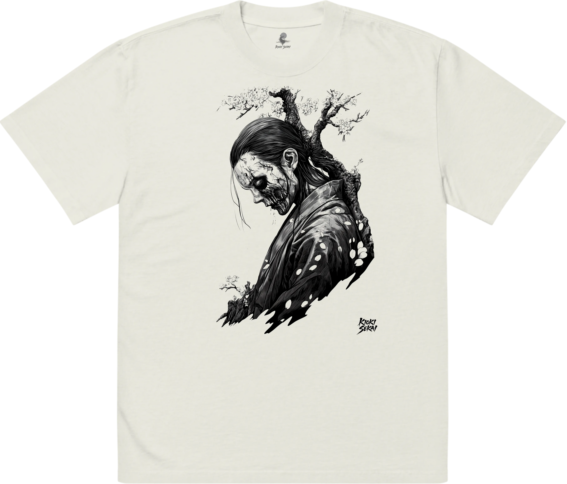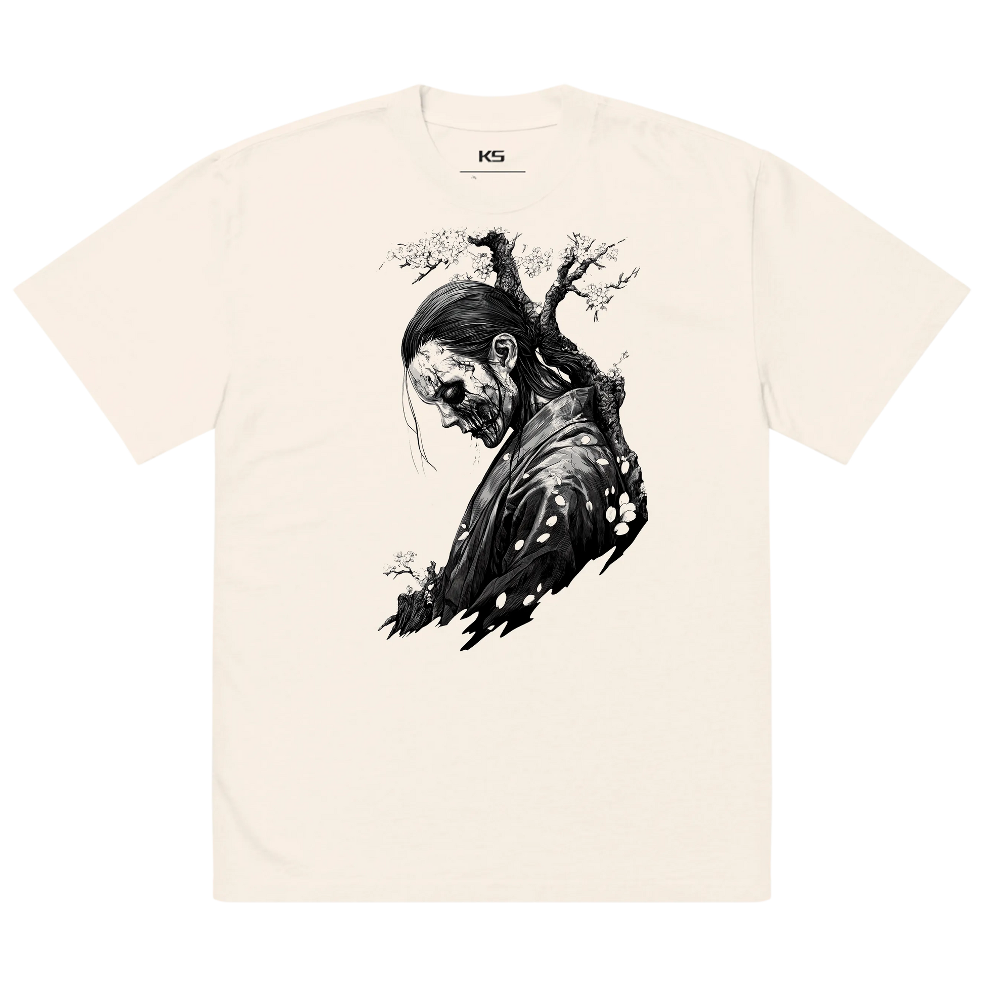 This premium oversized Japanese T-shirt features ethereal neo-traditional linework inspired by spiritual motifs, misty temples and calm atmospheres. Printed on a soft bone-white faded fabric, it enhances the collection’s minimal, timeless and spiritual identity.