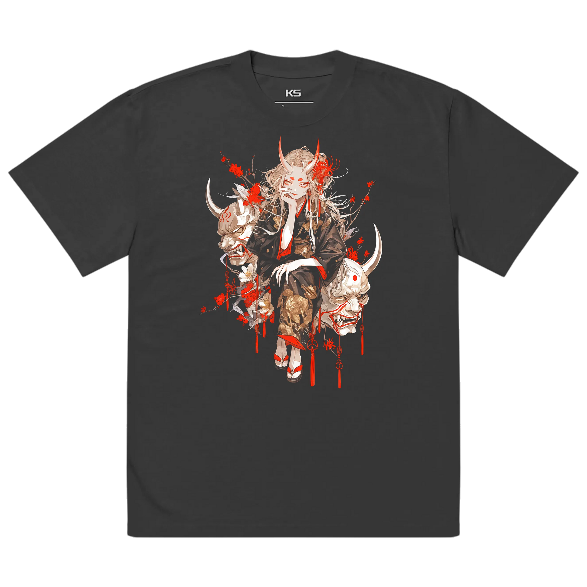 This premium oversized Japanese T-shirt features neo-traditional artwork inspired by oni symbolism, folklore, and shadowed aesthetics. Printed on a deep black faded fabric, it blends gothic influence with modern streetwear minimalism, creating a powerful and unsettling visual impact.